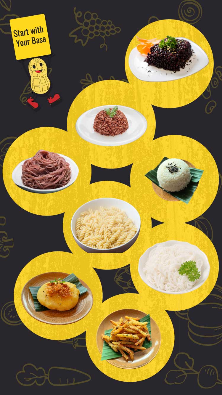 The Base offers six delicious options to customize your meal. Choose from rice, noodles or potatoes.